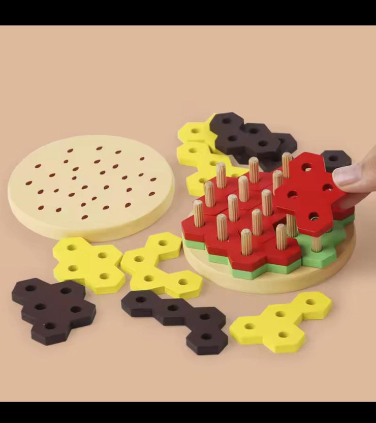 "Wooden Hamburger Stacking Puzzle – Fun Educational Toy for Kids (Learning Through Play!)"